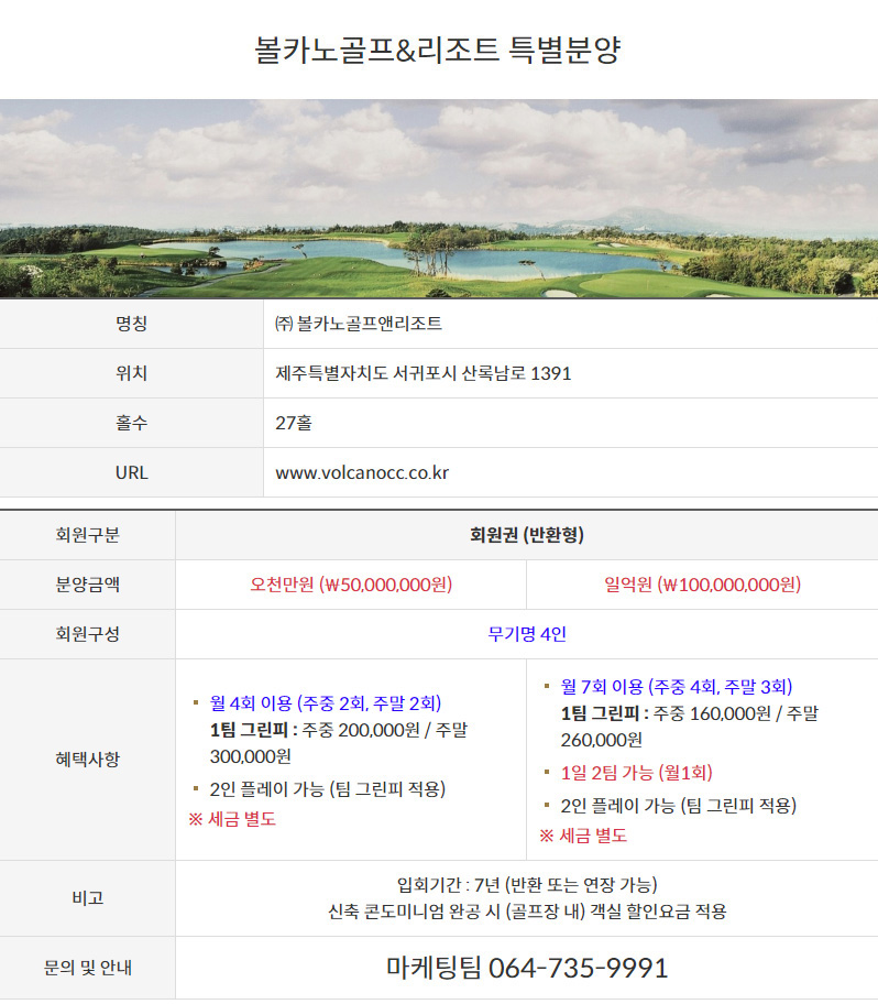 볼카노골프&리조트 특별분양 모집안내